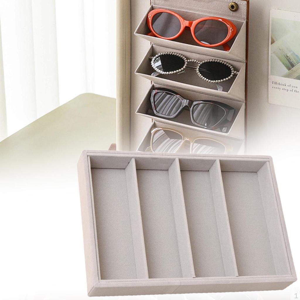Sunglasses Organizer Tray 4 Grids Eyeglasses Storage Box for Men Women Space Saving Trendy Glasses