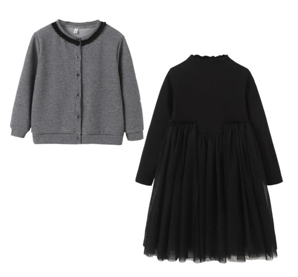 HOLRAFAN Graduation Suit Dress, Children's Formal Dress, Long Sleeve, 2-Piece Set for Girls, Cute Dress for Entrance Ceremonies, Interviews, Recitals, Everyday Wear, Entrance Ceremonies, Memorial Services, and Funerals, Spring, Autumn, and Winter