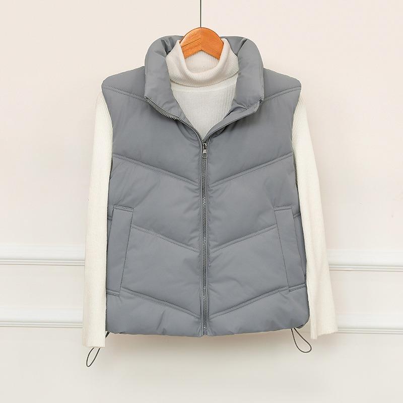 Winter New Down Cotton Vest Women's Simple Fashion Short Stand-up Collar Cotton Jacket Vest Jacket Tide
