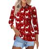 Women's Fashion Casual Lapel Short 3/4 Sleeve Christmas Print Shirt Women's Button Up Tops