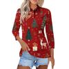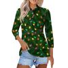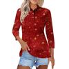 Women's Fashion Casual Lapel Short 3/4 Sleeve Christmas Print Shirt Women's Button Up Tops