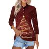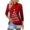 Women's Fashion Casual Lapel Short 3/4 Sleeve Christmas Print Shirt Women's Button Up Tops