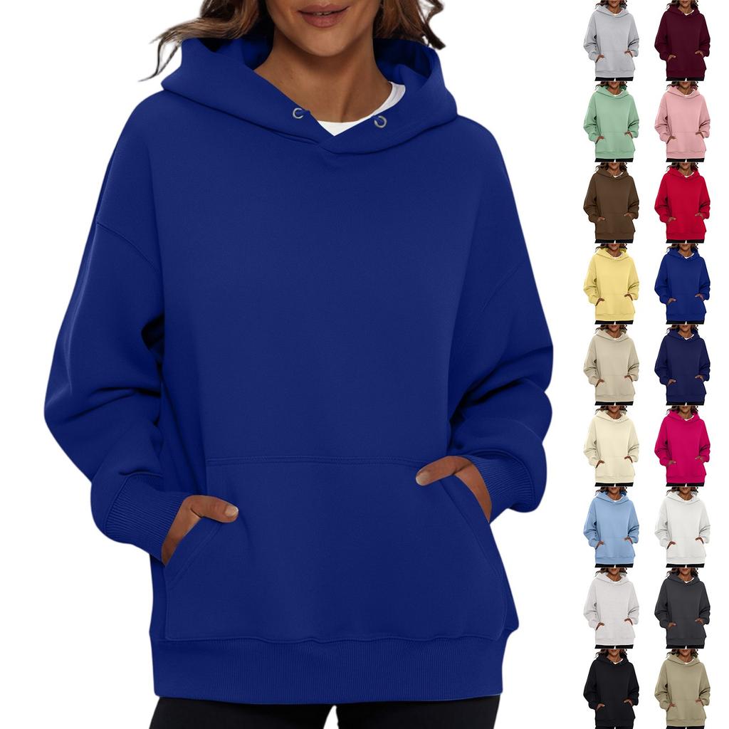 Ladies' Fashionable Solid Color Casual Hooded Pocket Long Sleeved Sweatshirt