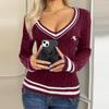 Women's Fashion V-Neck Solid Color Long Sleeve Sweater