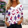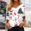 3/4 Sleeve Shirts For Women Christmas Printed Graphic Tees Blouses Casual Plus Size Basic Button Tops Pullover — buy online with free worldwide shipping!