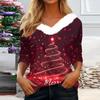 3/4 Sleeve Shirts For Women Christmas Printed Graphic Tees Blouses Casual Plus Size Basic Button Tops Pullover