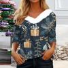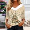 3/4 Sleeve Shirts For Women Christmas Printed Graphic Tees Blouses Casual Plus Size Basic Button Tops Pullover — buy online with free worldwide shipping!