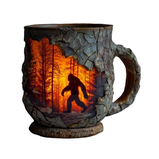 Sasquatch Forest Fires Mug Unique Coffee Cup 3D Bark Texture Cup Hot And Cold Drink Container for Coffee Lovers And Adventure Enthusiasts