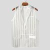 INCERUN Men Lapel Sleeveless Buttons Striped Transparent Mesh Sheer Waistcoats