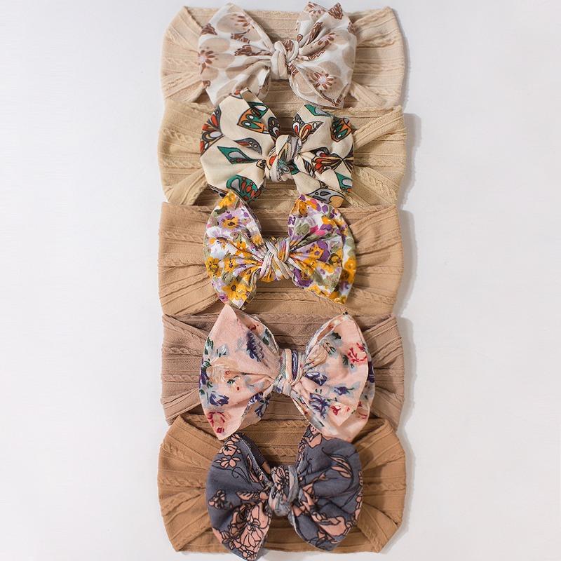 New Jacquard Bow Five-Color Coffee Headband, Children's Soft Elastic Headgear, Baby Headband