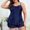Experience ultimate comfort and breathability with this women's pajama set, crafted from luxurious silk. This set features a sleeveless cami dress and matching shorts, both designed to keep you cool during warm summer nights. The silk material ensures a smooth, gentle touch on your skin, making it perfect for a restful night's sleep. Ideal for lounging or sleeping, this pajama set combines elegance with comfort, offering a stylish solution for warm-weather relaxation.