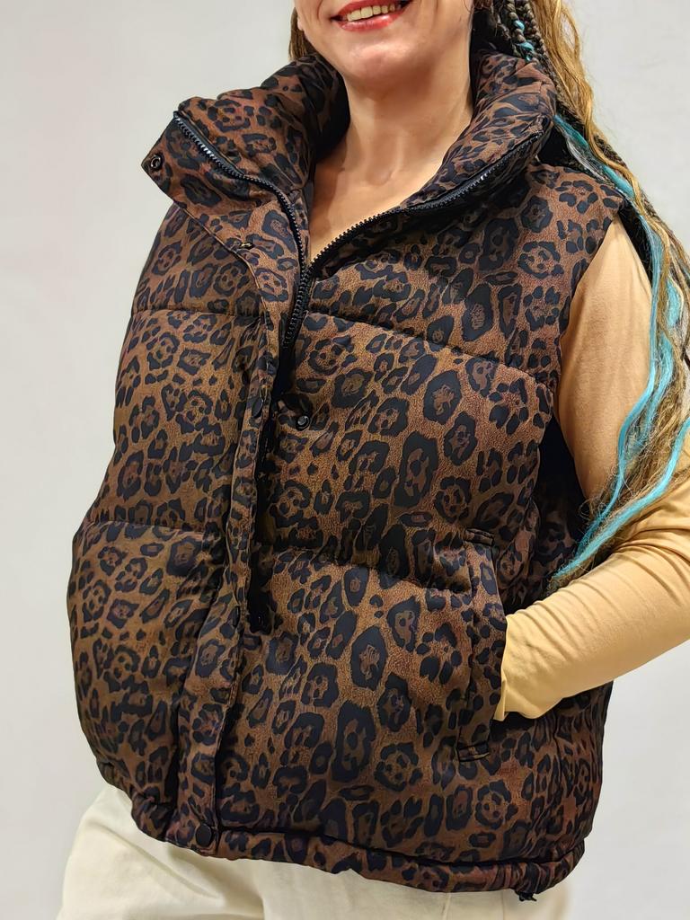 Fashion Leopard Print Short Vest Stand Collar Warm Sleeveless Jacket Women Outerwear Autumn Winter — buy online with free worldwide shipping!