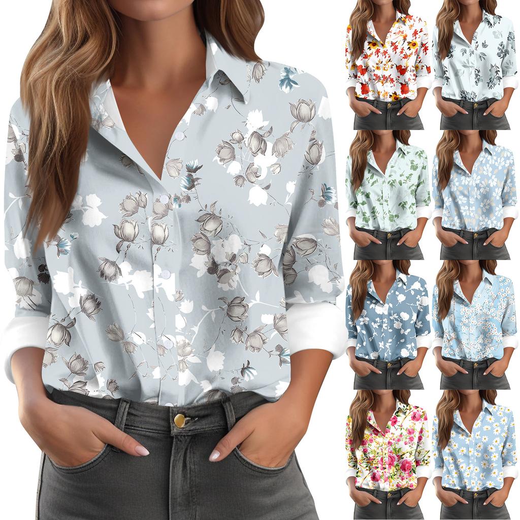 Women's Long Sleeve Buttoned Floral Print Casual Shirt Top — buy online with free worldwide shipping!