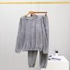 Women's Flannel Warm Home Sleepwear Sets Solid Color Round Neck Fleece Thick Pullover Lady Pajamas Long Sleeve Pants Casual 2Pcs