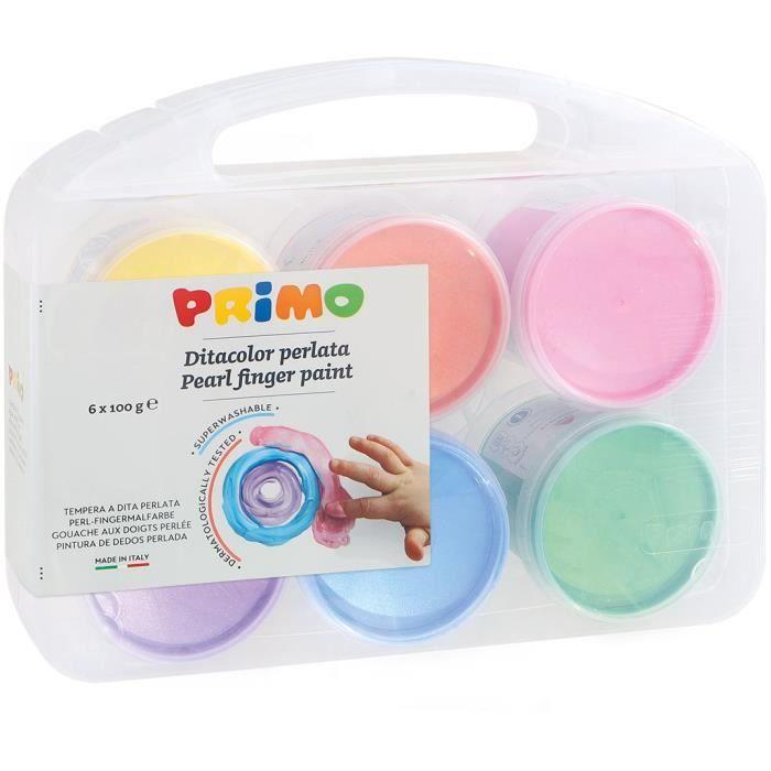 PRIMO 229TPD100SP Gouache À Doigts Perlée En Pot De 100 Gr., Mallette Multifonction, 6 Couleurs.