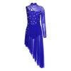 Womens Asymmetrical Lyrical Dance Dress Mock Neck Cutout Sheer Mesh Shiny Rhinestones Performance Costume — buy online with free worldwide shipping!