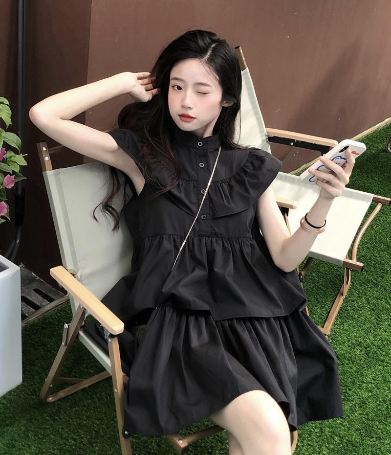 Black Mini Dresses Women Ruffles Sweet Girls Summer Sleeve Princess Style All-match Korean Preppy Students Dress — buy online with free worldwide shipping!