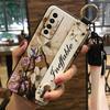 Soft Case Silicone Phone Case For Tecno Camon17P Dirt-resistant Flower Durable Wrist Strap Wristband Lanyard Ring