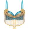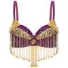 Womens Sparkly Sequins Belly Dance Top Adjustable Straps Plastic Beaded Tassels Underwired Bra