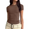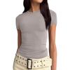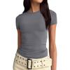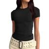 Women Short Sleeve Soild Sexy Cute Tee Slim Fit Tight Crop-Top T Shirt