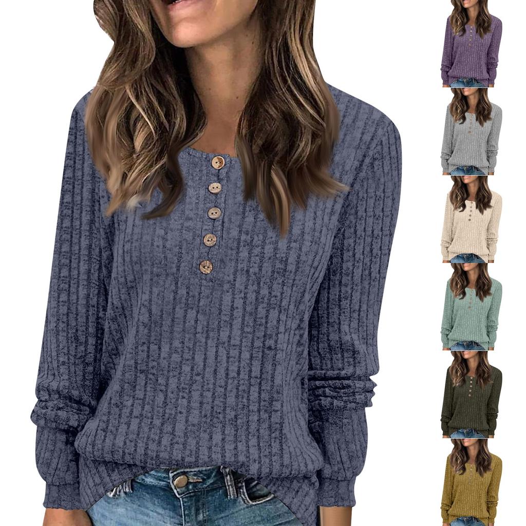 Women's Fashion Long Sleeve Pullover T-Shirt Solid Color Button Top