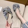 2024 New Summer Women's Slippers Fashion Bow Pearl Sandals Women Baotou Flat Slippers Everyday Casual Slippers Women Sandals