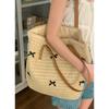 Fashionable Large-capacity Ladies' Backpack, Bow Tote Bag, Vacation-style Woven Bag