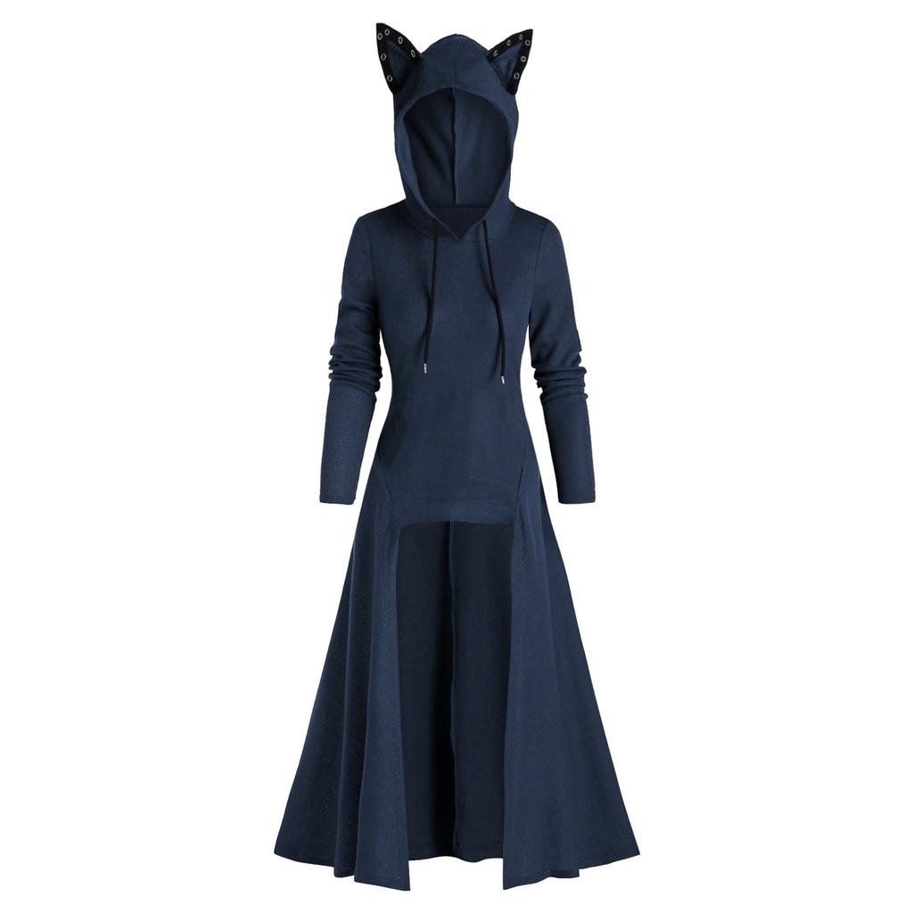 Womens Cat Ears Hooded Plus Size Vintage Cloak High Low Sweater Blouse Tops