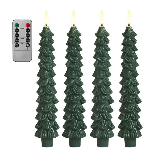 Each pack includes 4 flameless Christmas tree cone candles measuring 0.8 inches in diameter and 10 inches in height. Powered by 2 AAA batteries each (not included), these candles come with 2 remote controls and an operation manual. Ideal for Christmas, parties, shop decorations, and more, these LED candle lights are a must-have for creating a warm and inviting atmosphere.