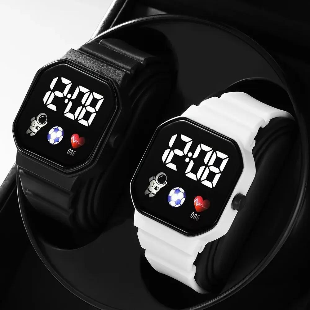 2PCS Couple's Watch Unisex Silicone Band LED Digital Watch Square Students Sports Watches