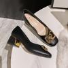 Spring Summer Shoes for Women Fashion Pumps New OL Chunky Heels High Heels Shoes Ladies Leather Boat Shoes 35-43