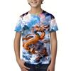 3D Digital Print Kids Stylish Lion Dragon Animal Pattern T-Shirt Boys Short Sleeve Crew Neck Casual T-shirts