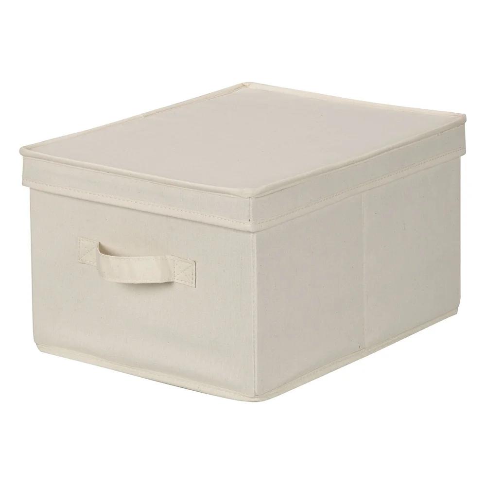 Large Canvas Storage Box with Lid Stacking Organizer Seasonal Items Toys Clothes Home Dorm Folding Storage Solution — buy online with free worldwide shipping!