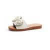 Soft Bottom Large Size Summer Wear 2025 New Bow Flat Bottom One Word Women's Fashion Beach First Layer Cowhide Cool Slippers