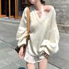Lazy Wind V-neck Knitted Sweater Women's New Autumn and Winter Wear Loose and Thin High-end Long-sleeved Top