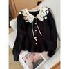 Spring and Autumn Lace Doll Collar Bright Silk Soft Waxy Knitted Cardigan Women's Waist Sweater Women's Top Cover