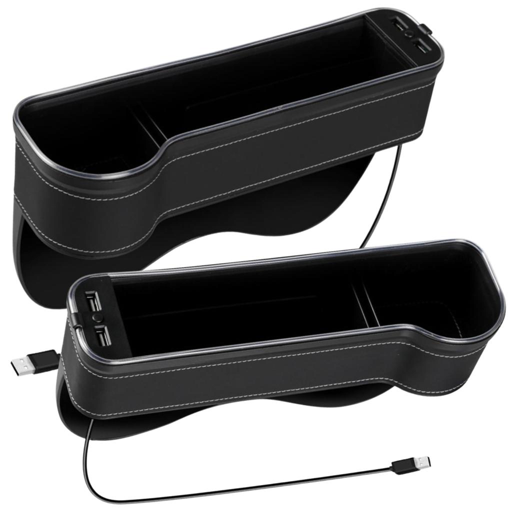 This multifunctional car console (pocket) box effectively utilizes the gap between the driver's and passenger's seats. Crafted with our signature microfiber leather, it's durable and practical, and daily cleaning is easy with a lightly damp cloth. While ideal for seat-side storage, its sophisticated design and texture make it a great addition to any vehicle. It's also available in four colors, so you can choose the one that best suits your vehicle. In addition to cup holders and storage, it also features four USB ports (two each) for fast charging multiple devices, including iPhones and smartphones. It also features a built-in light for improved nighttime visibility and a stylish appearance. Installation is easy; simply insert it into the gap and you're ready to go. Please note: Installation will not work if it interferes with the handbrake, so please be sure to check the dimensions. [Details] Size: 28.5cm x 18.5cm x 7cm / Colors: Black, Off-White, Red, Brown / Set Contents: Two units