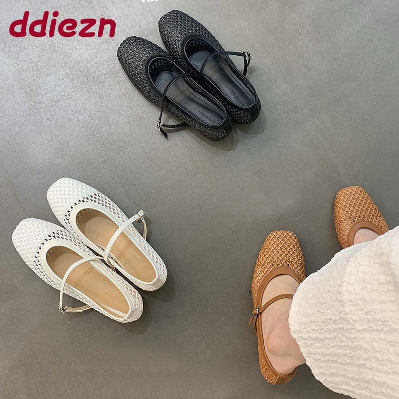 Fashion Female Weave Women Flats Shoes With Height Increasing Footwear Shallow Fashion Buckle Strap Ladies Flats Mary Janes Shoes