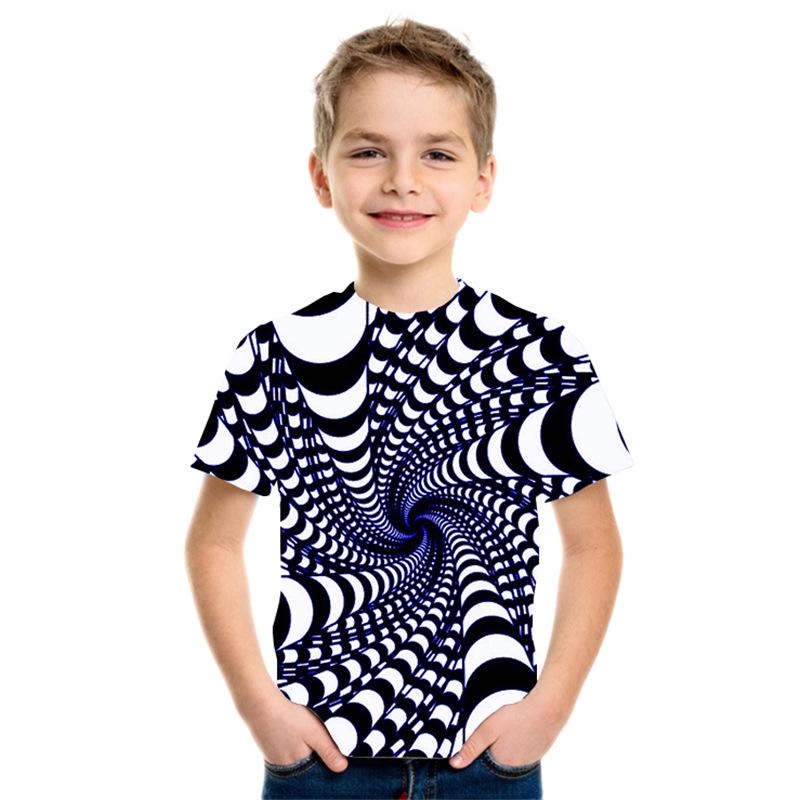 Summer Round Neck 3D Geometric Pattern Printed Top Fashionable Casual Short Sleeved Children's Boy T-shirts — buy online with free worldwide shipping!