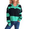Women's Contrasting Striped Knitted Lapel Long Sleeved Pullover Sweater Top — buy online with free worldwide shipping!