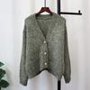 Autumn and Winter New V-neck Loose Short Knitted Cardigan Gentle Wind Soft Waxy Lazy Wind Sweater Jacket Women