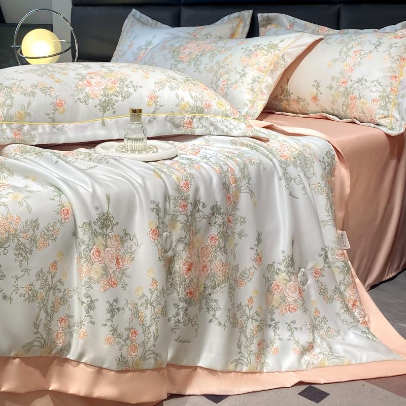 Summer Cool Tencel Quilt Set 4 Piece Includes Summer Blanket Bed Sheet Two Pillowcases Silk Lightweight Quilt For Double Twin Size