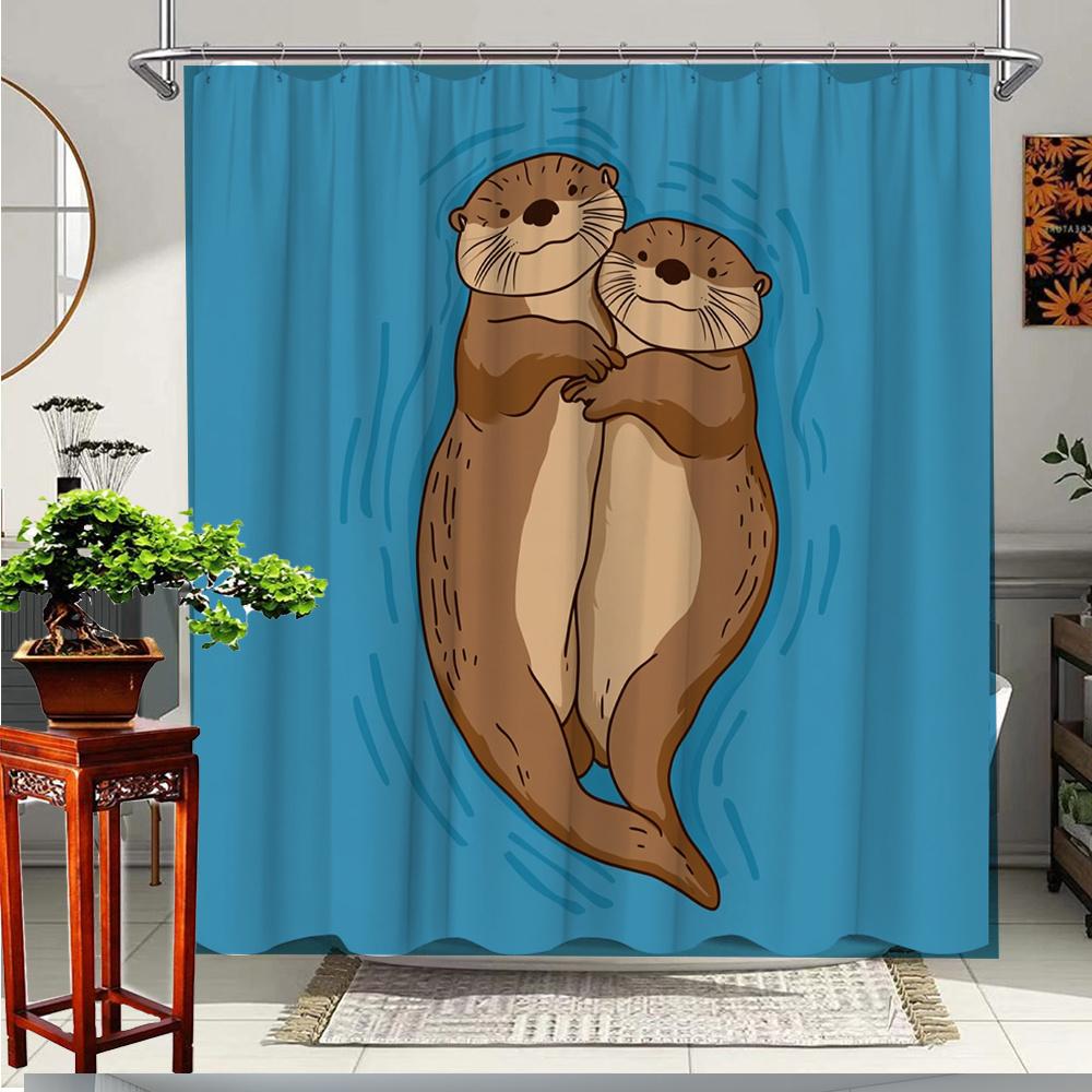 1pc Cute Otters Shower Curtain - Adorable Forest Animal Design, Durable Polyester Fabric, 70. 8x70. 8 Inches with 12 Hooks,