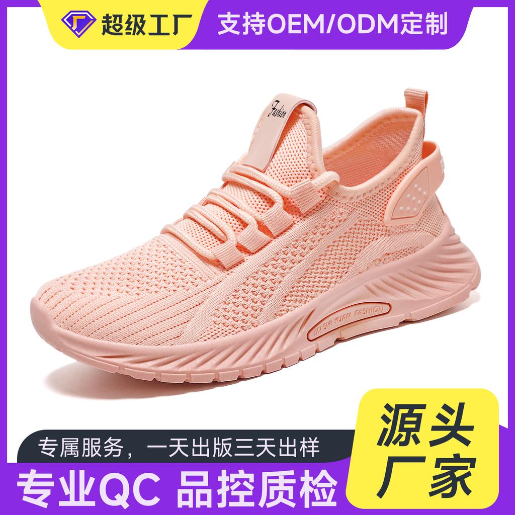 Shoes Women's Fashion Casual Sports Single Shoes Breathable Trend Mesh Flying Weaving Sports Women's Shoes Processing Customization