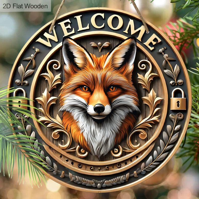 Wooden Hanging Decorative Sign, Welcome Signs, Fox Pattern,indoor or Garden Decorations, 2D Flat Pendants, Housewarming Gifts for Friends