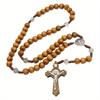Christ Jesus Wooden Beads Rosary Bead Cross Pendant Woven Rope Chain Necklace Religious Orthodox Praying Jewelry