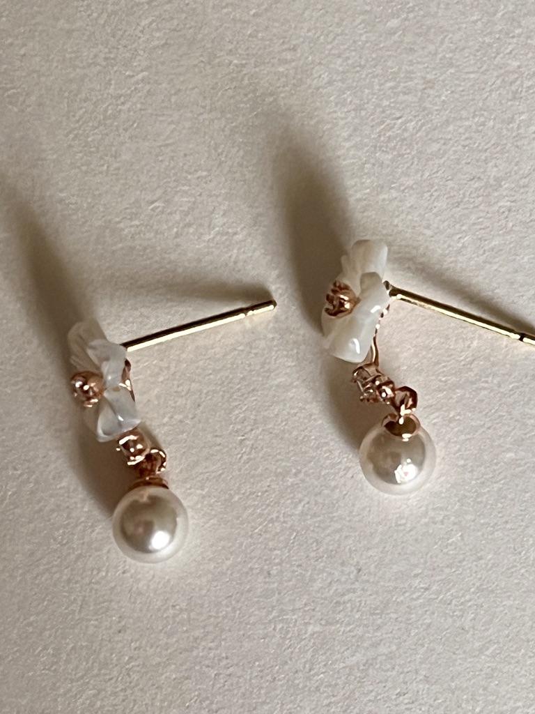 14K Swallow Pearl Mother-of-Pearl Flower Earrings W — buy online with free worldwide shipping!