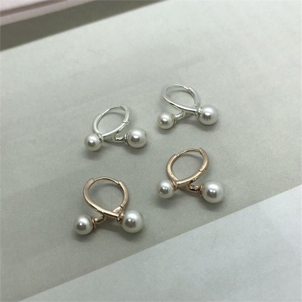 [Onm] Onm 8mm 6mm Pearl Layered Fashion Silver Earrings (9806128)
