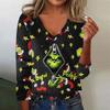 Women's Cute Sweatshirt Knitted Fashion Casual V-neck Long-sleeved Cozy Print Top