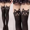 Women Cute Black Cat Printed Silk Knee Socks Casual Thigh Cotton Warm High Over Knee Socks Cute Romantic Socks Lady Cat